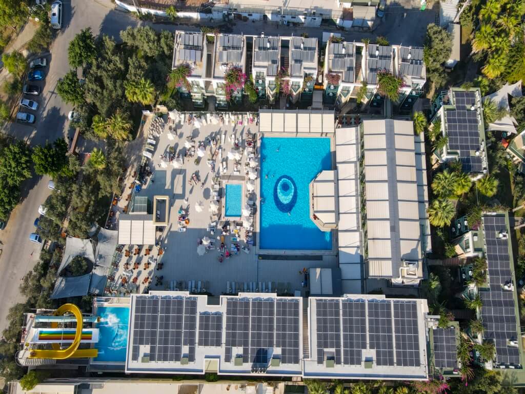 Намира се на 37 км от летище Бодрум, на 3 км от центъра на Бодрум, район Гюмбет, на 20 м от брега на морето (пресича се улица). Построен 1995 г., на обща площ от 13 200 м². Частично реновиран 2014 г.