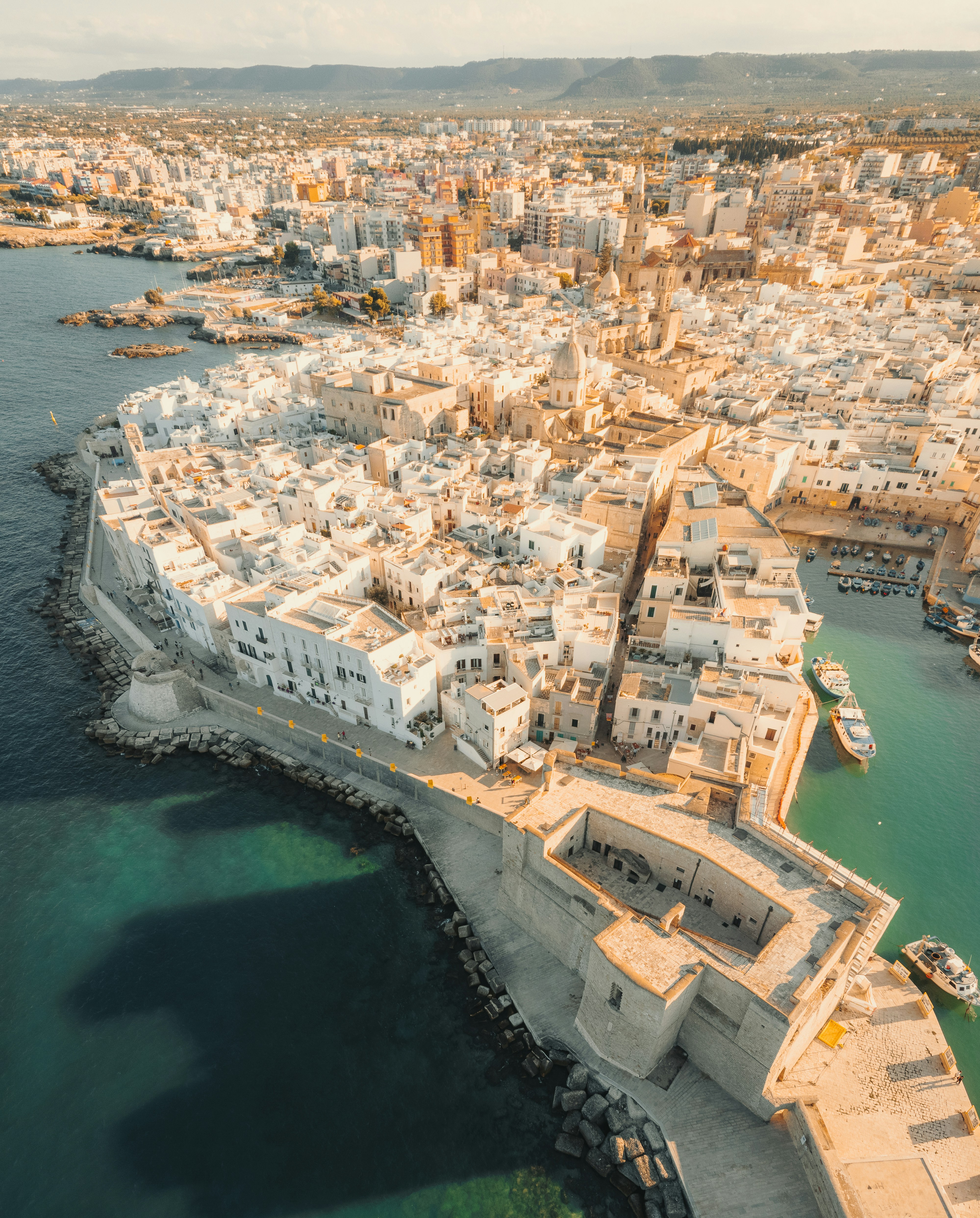 От терасите в стария град се разкриват невероятни панорамни гледки, докато лек морски вятър носи звуците на песента „Volare“, изпята за пръв път от местния любимец - Доменико Модуньо. Тук ще имате време да се разходите, да снимате, да опитате нещо характерно и вкусно - сандвич с октопод, ароматното кафе „Спечале“ или прочутия домашен сладолед.