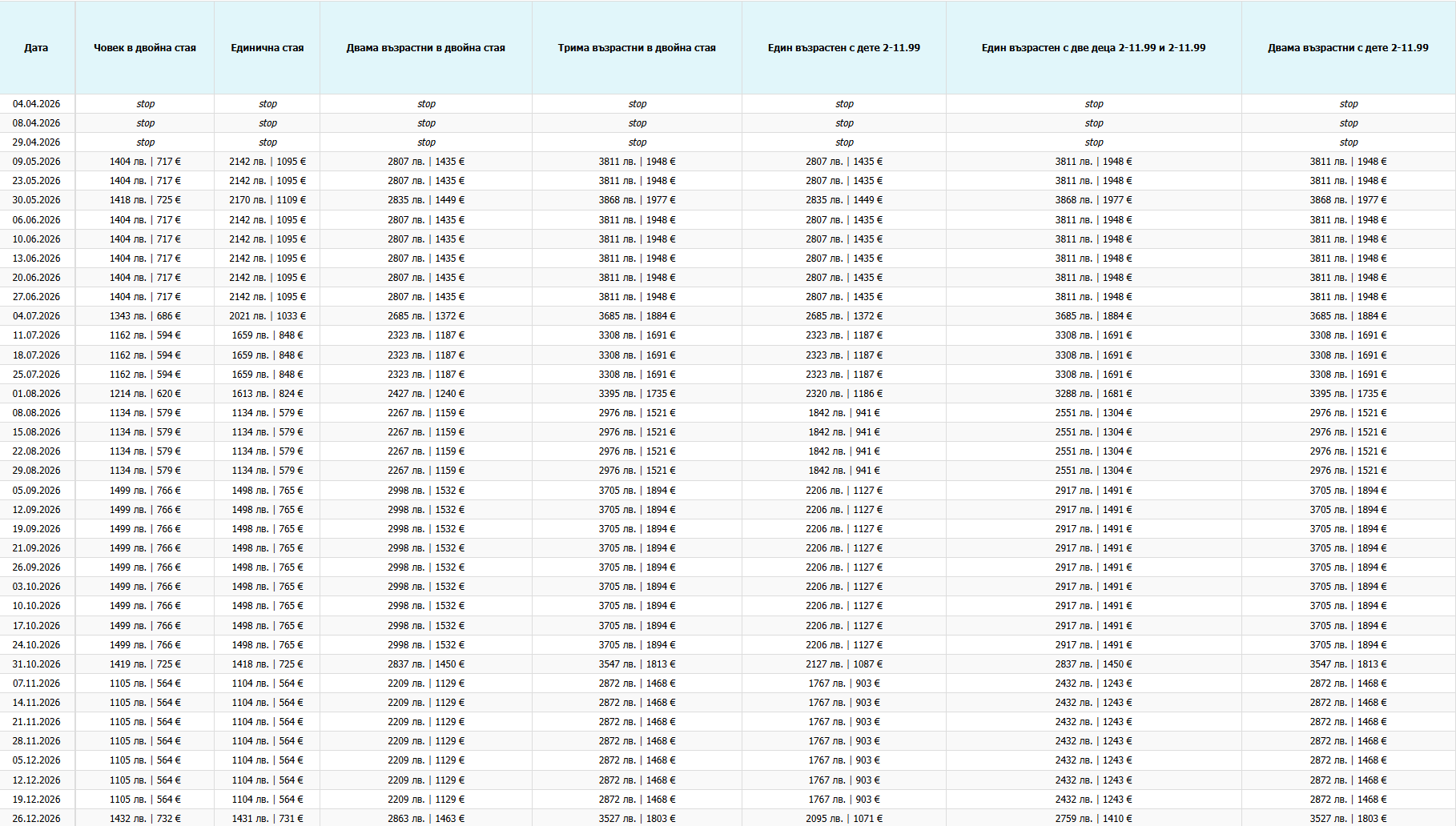Цена за възрастен 138 BGN | 70 EUR
