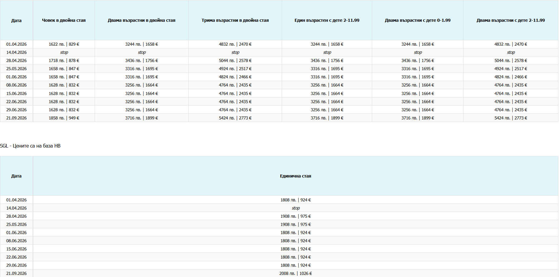 До 30 дни преди тръгване 50 лв такса анулация на човек