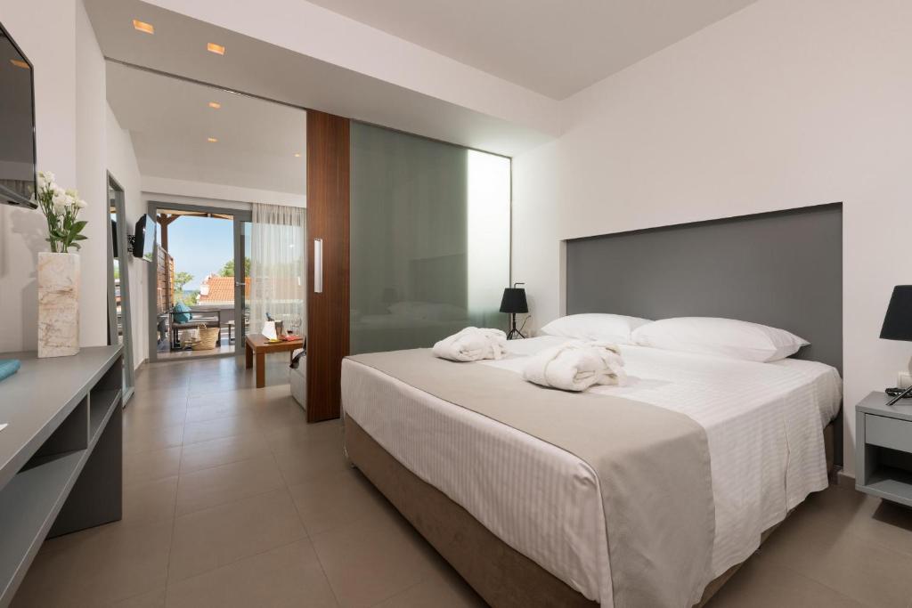 Стандартните двойни стаи са оборудвани с удобно двойно легло или две единични легла и могат да настанят до трима възрастни. Стаите с гледка към планината Ипсарио, изящната градина или частичната гледка към кристално чистите, лазурни води на плажа пред хотела със сигурност ще ви оставят доволни.