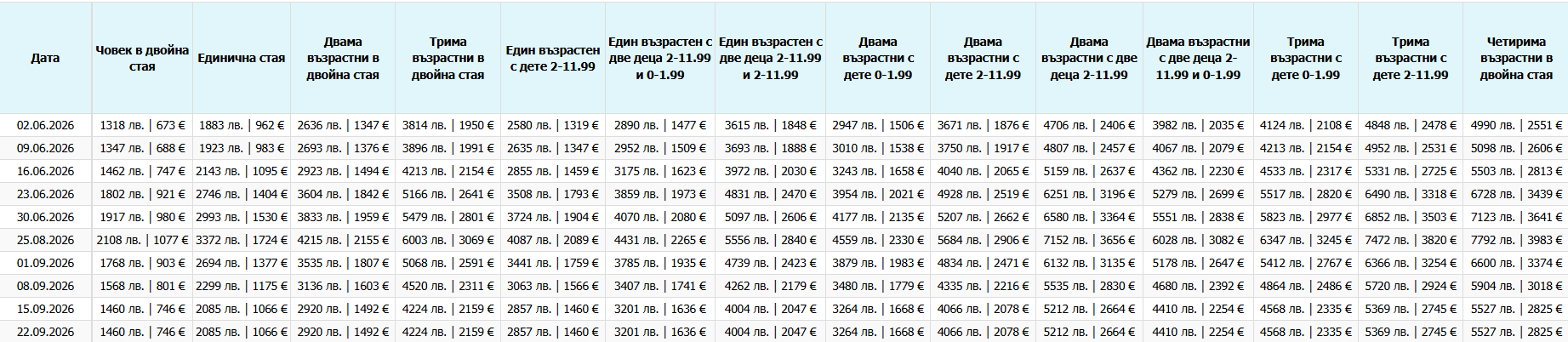 Цена за възрастен 148 BGN | 75 EUR